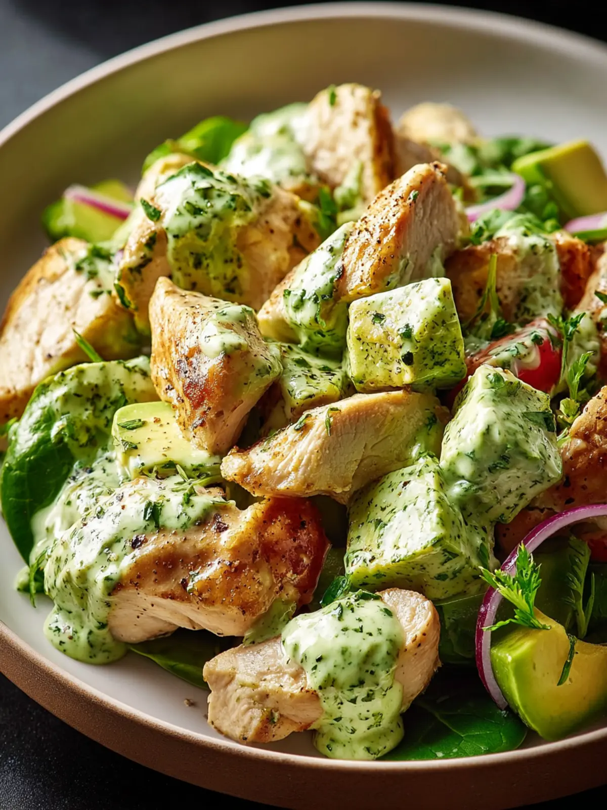 A delicious and healthy chicken avocado salad perfect for lunch or dinner.