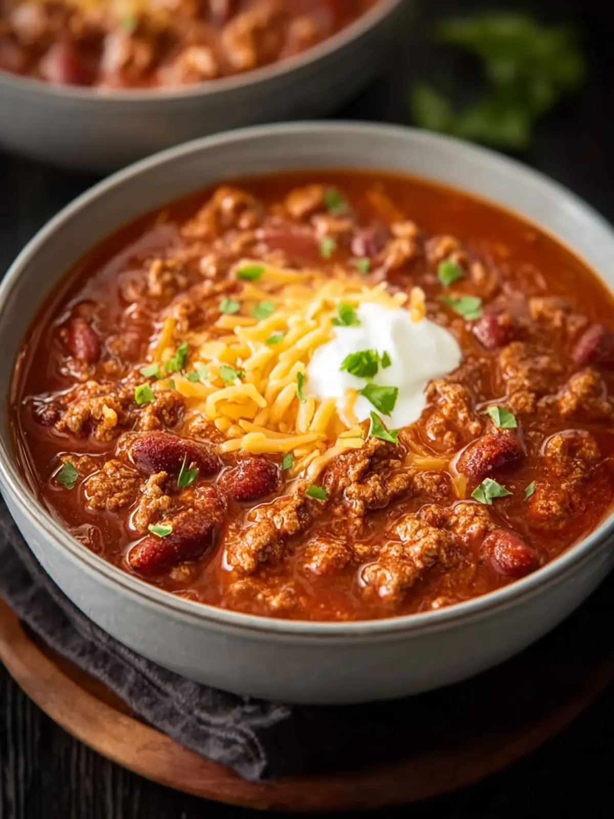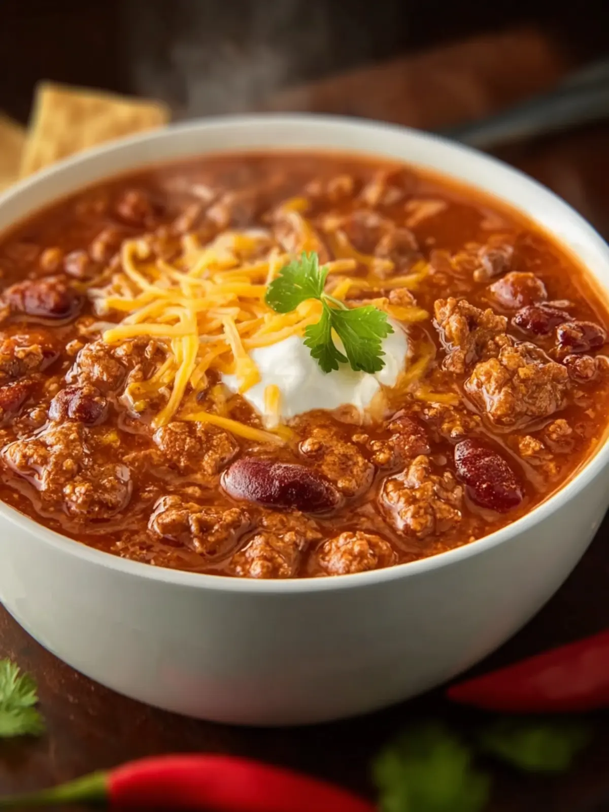 - Sour Cream: A dollop brings a cooling contrast to the warmth of the chili.