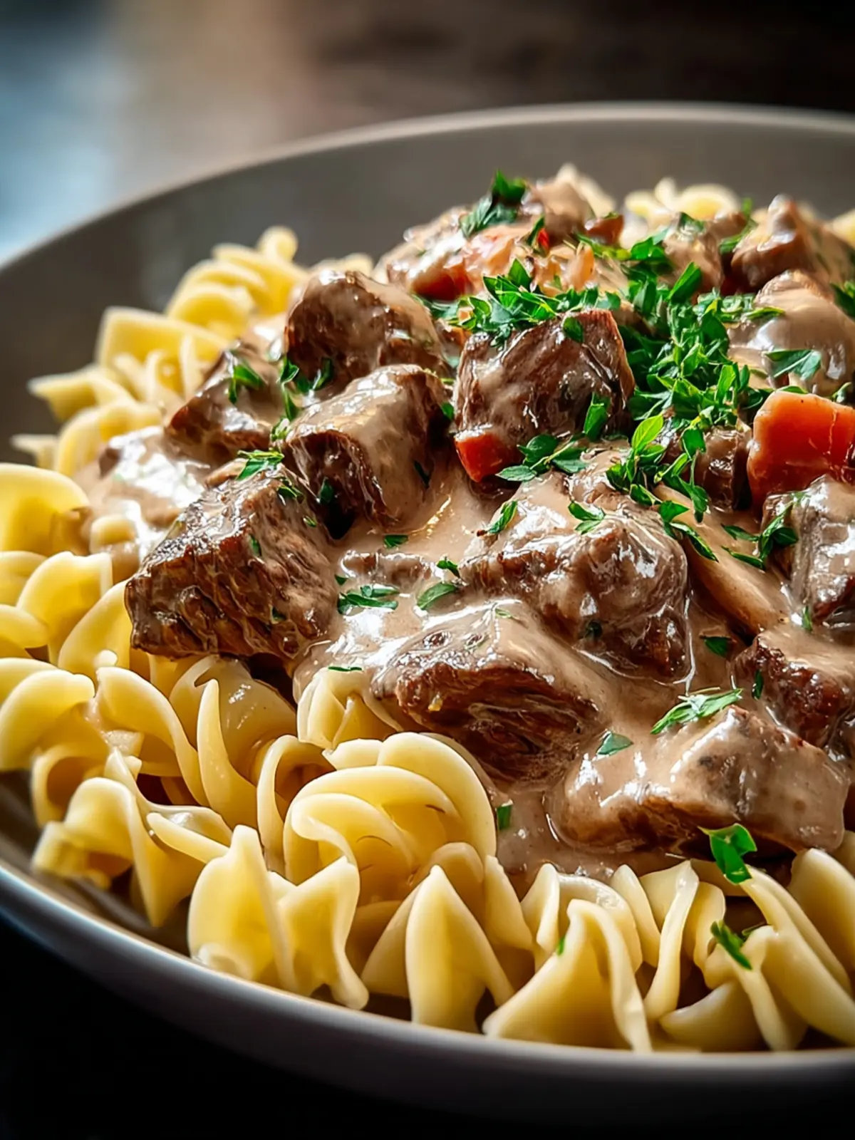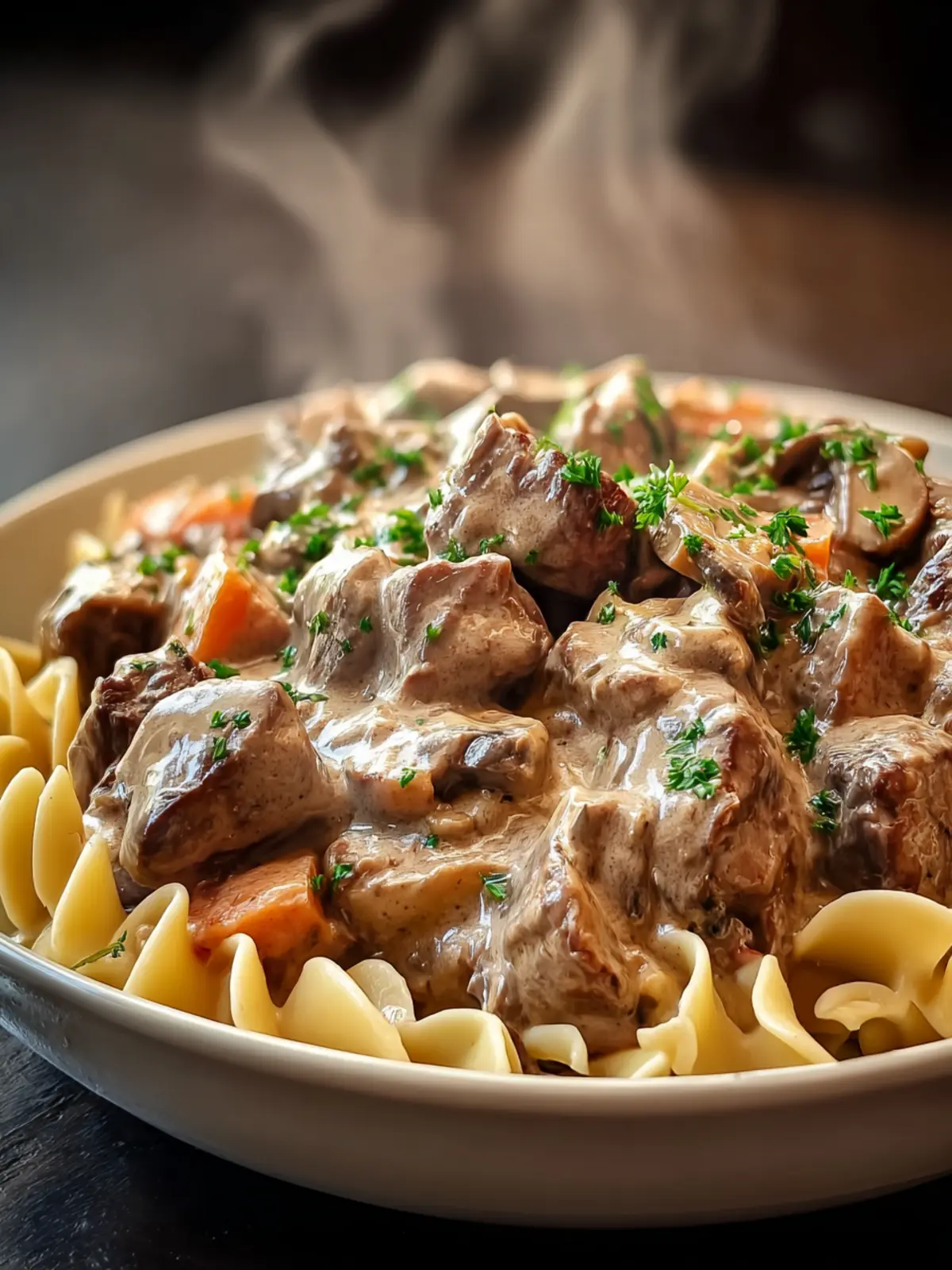 Savory and Satisfying: The beef becomes tender and flavorful as it slowly cooks in savory broth, blending beautifully with the mushrooms and sour cream. Every bite is a delightful blend of textures and flavors that will keep you coming back for seconds.