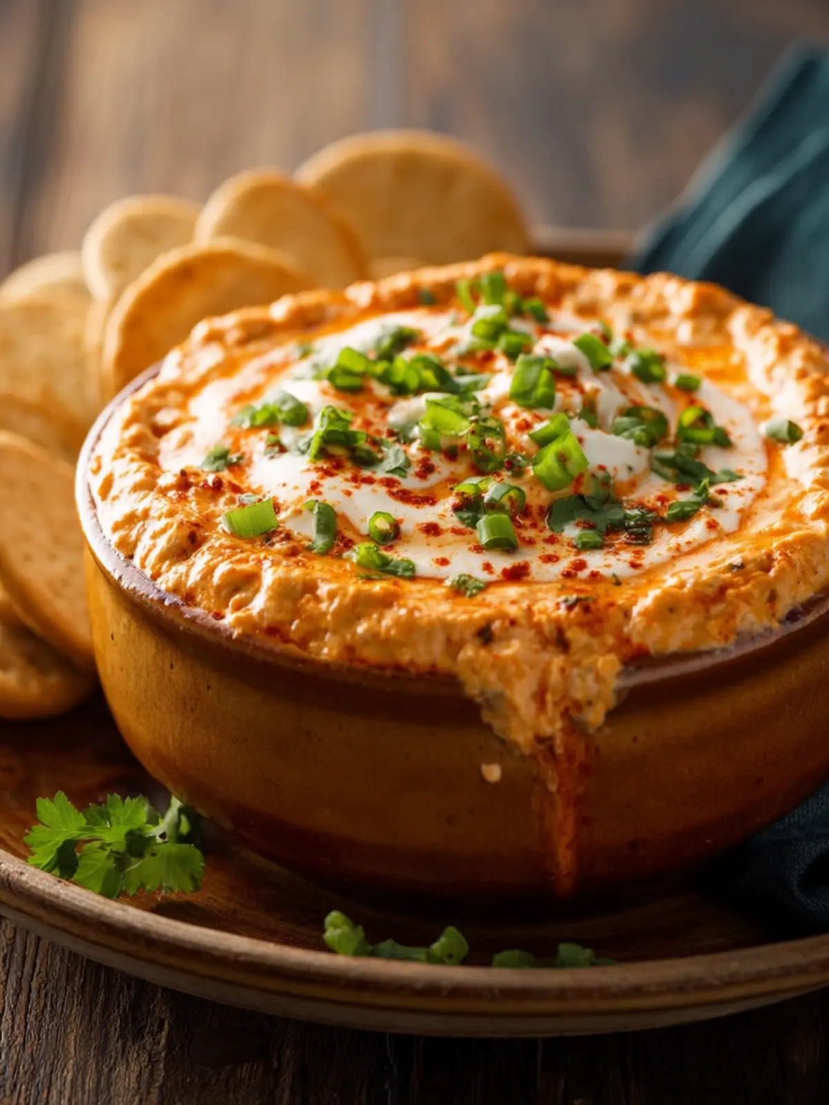 Serve your Crockpot Buffalo Chicken Dip with an assortment of dippers. Think celery sticks, tortilla chips, or even toasted baguette slices. This variety makes for a fun dipping experience!