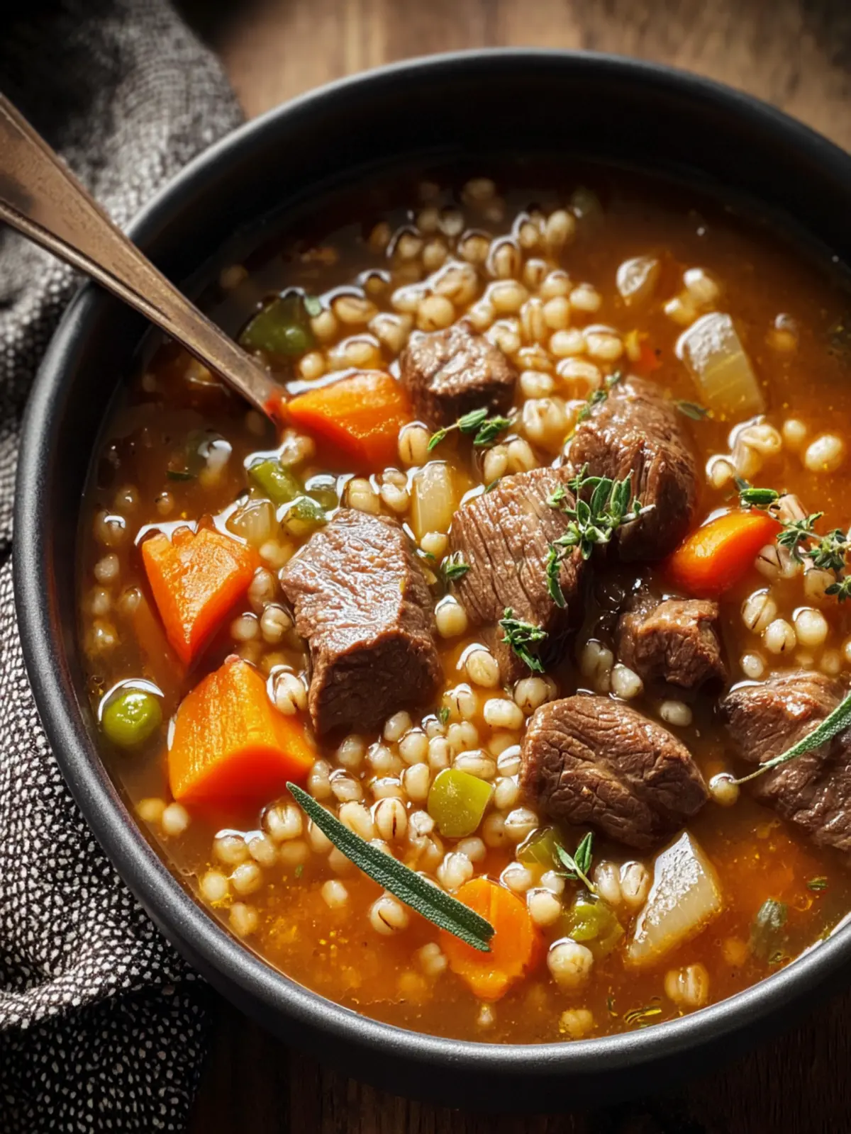 • Herbs: Fresh thyme and bay leaves add an herbal note that elevates the dish. Don’t skip these; they are what make your hearty beef and barley soup fragrant and inviting.