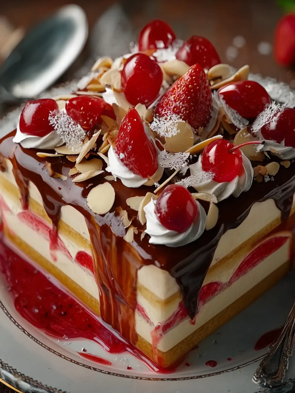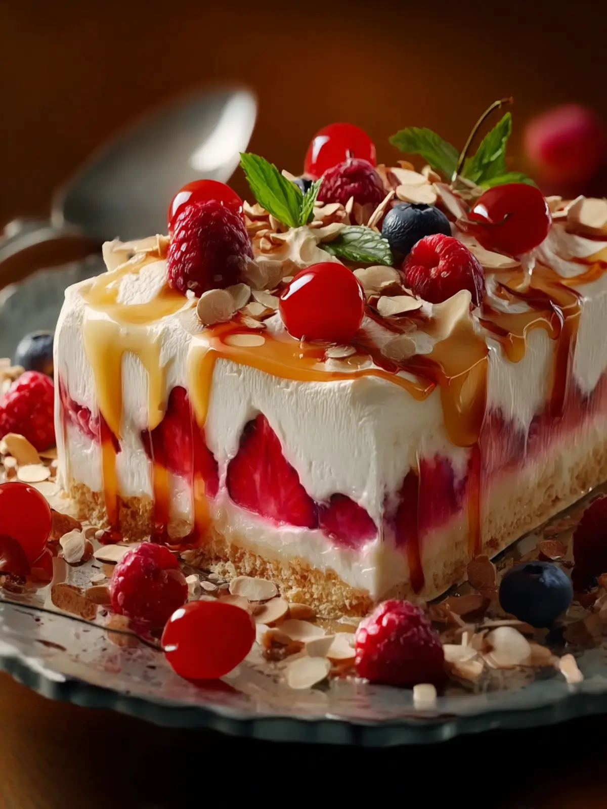 A light sprinkle of fresh berries—like strawberries or raspberries—adds a refreshing burst of sweetness. Their tartness beautifully contrasts the cake’s creamy elements, enhancing the overall taste.