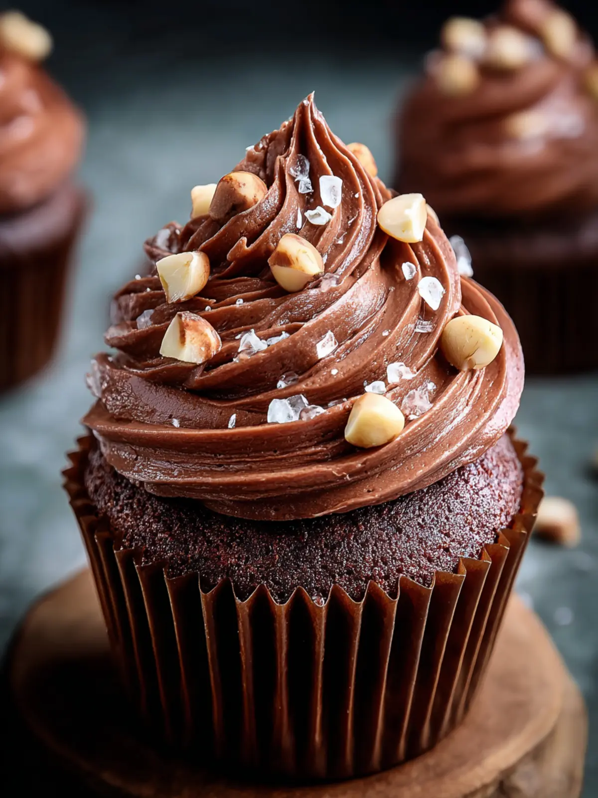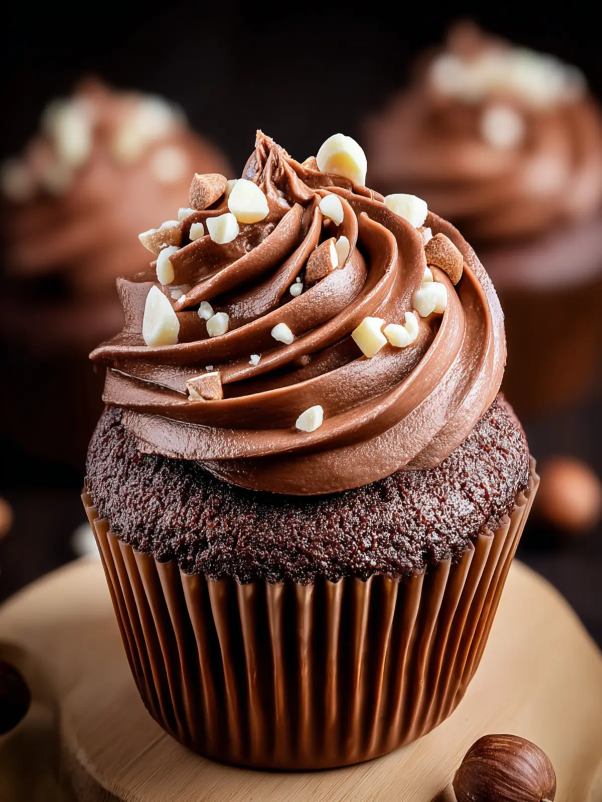 For an added textural element, sprinkle crushed hazelnuts or chocolate-covered hazelnuts on top of the frosting. This crunchy topping provides a nice contrast to the soft cupcake, enhancing the overall experience.