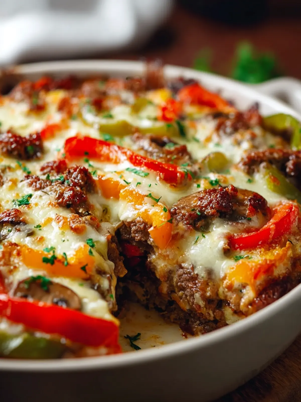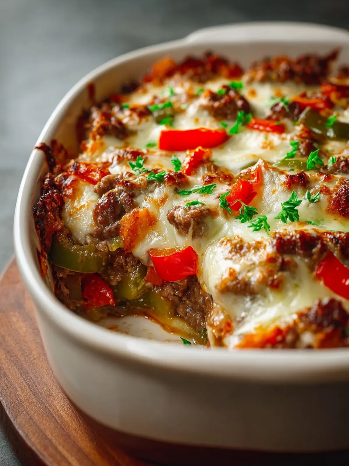 Low Carb Philly Cheesesteak Casserole: Easy & Irresistibly Cheesy