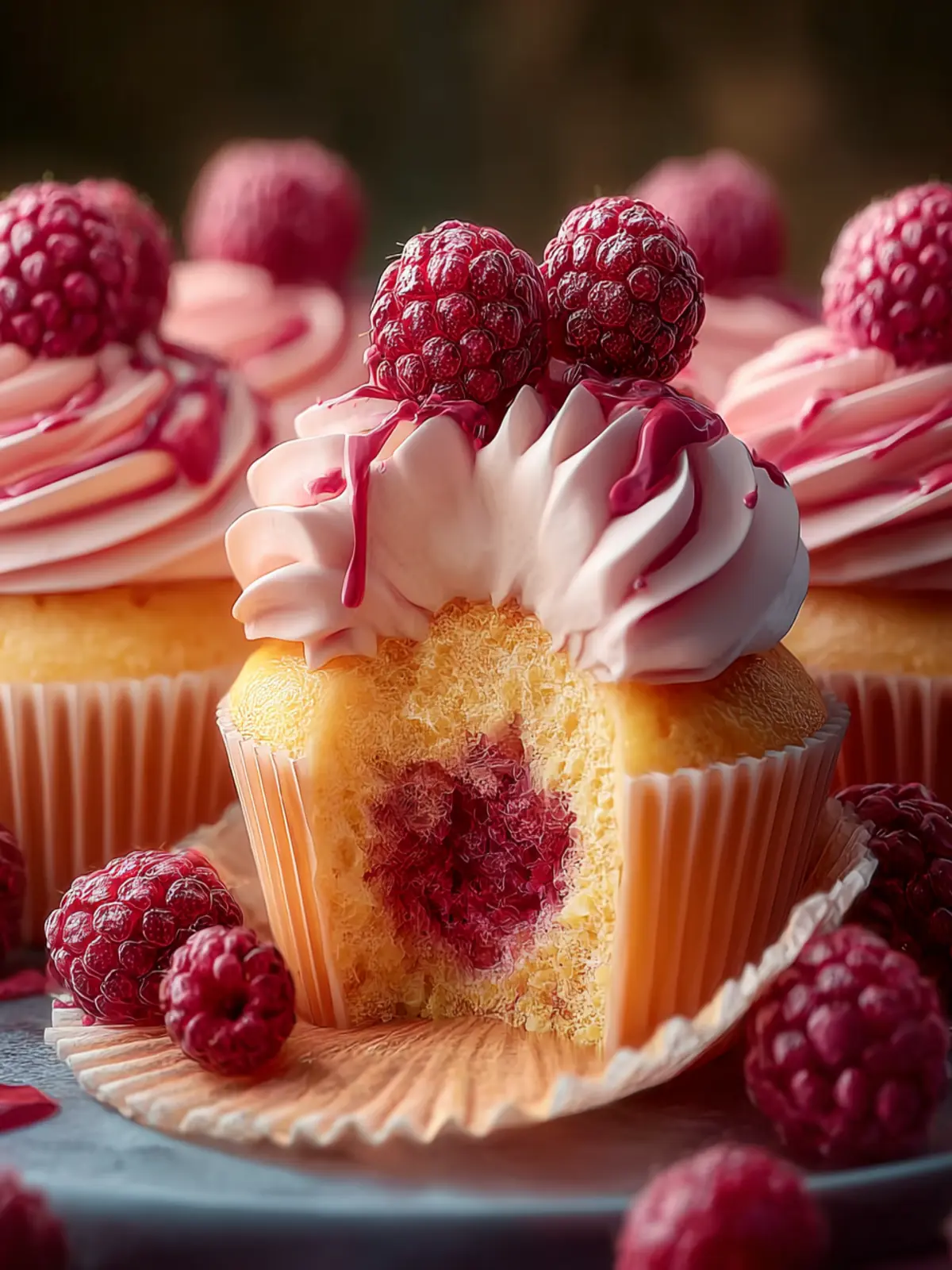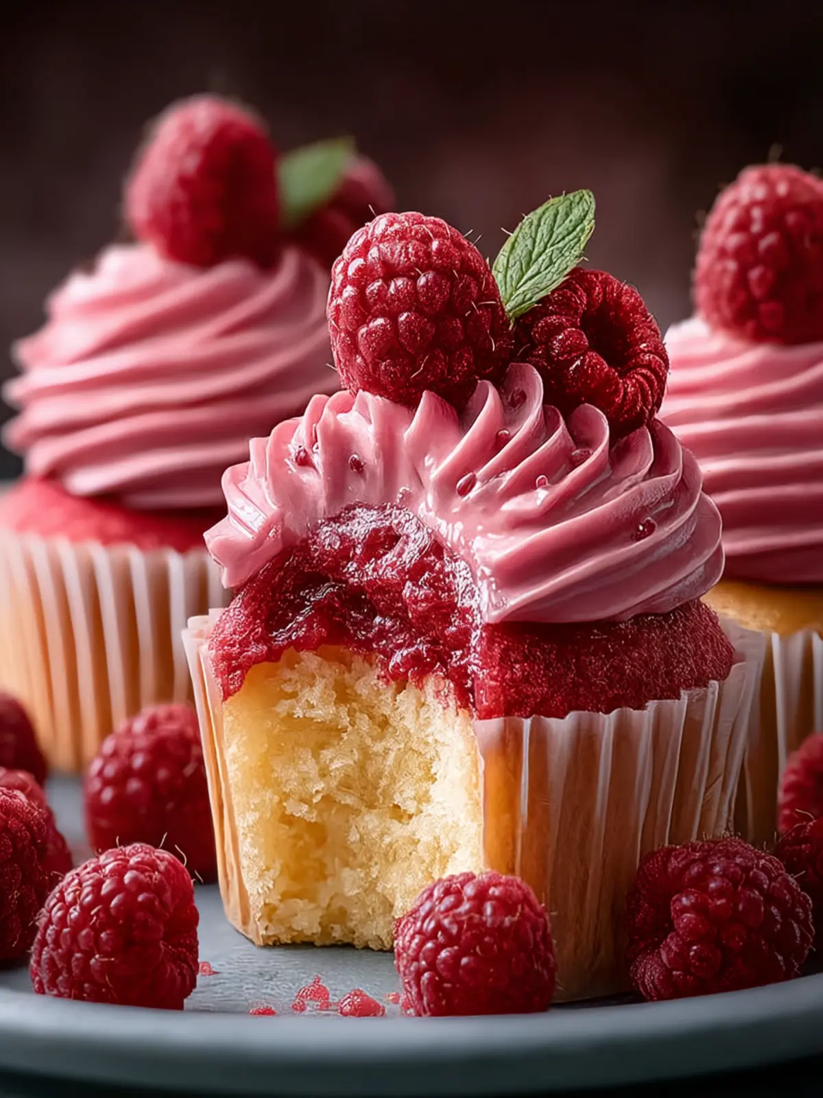What makes these cupcakes even more irresistible is how effortlessly they balance flavors and textures. The soft, moist cake cradles a burst of juicy raspberries, creating a delightful contrast. Topped with a creamy frosting that complements the fruit’s tartness, each bite is a perfect harmony of savory and sweet.