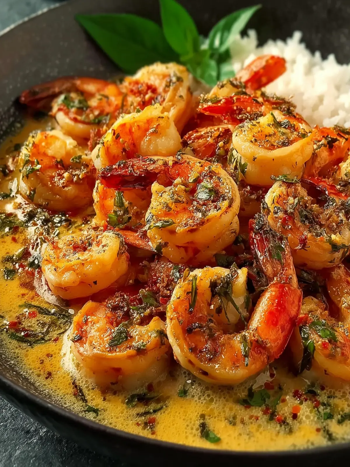 A delicious and creamy coconut shrimp dish with garlic and spices.